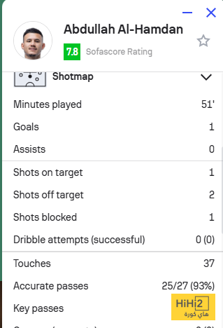 هاي كورة : حقق عبدالله الحمدان أرقامًا جيدة في الشوط الأول من مباراة الهلال والعدالة، والتي انتهت بتقدم الزعيم بهدف دون رد عن طريق الحمدان.