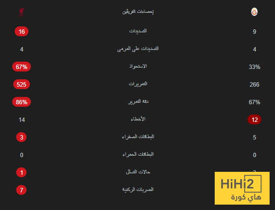 إحصائيات مباراة ليفربول ضد غلطة سراي