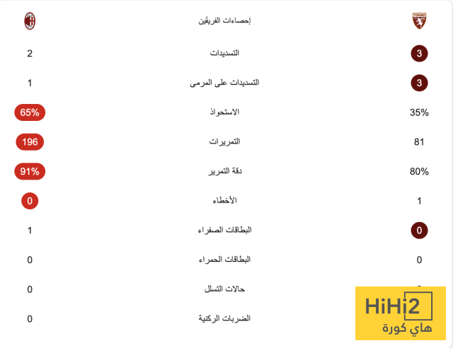 إحصائيات نصف ساعة من مباراة ميلان وتورينو