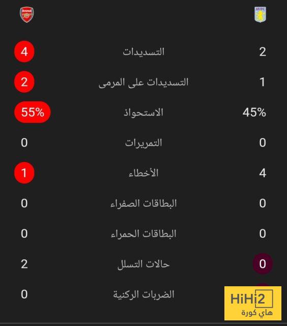 إحصائيات 30 دقيقة بين أرسنال و أستون فيلا