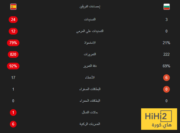 احصائيات مباراة اسبانيا ضد بلغاريا