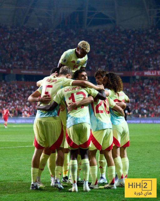 هاي كورة- انتهت احداث الشوط الاول بتقدم منتخب اسبانيا امام نظيره التركي، بثلاثية نظيفة، على ملعب الأخير، ضمن التصفيات الأوروبية المؤهلة لبطولة كأس العالم 2026.
