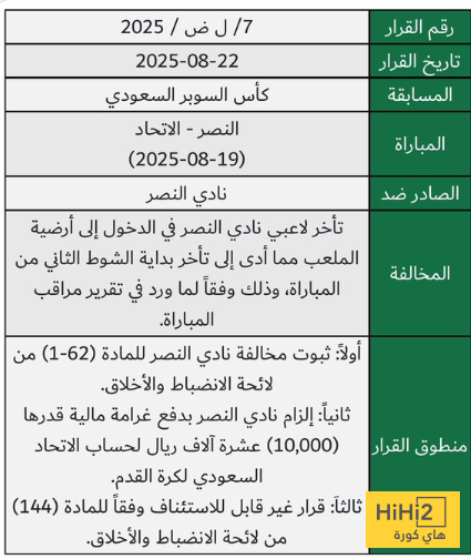الانضباط تُغرم النصر قبل مواجهة الأهلي!