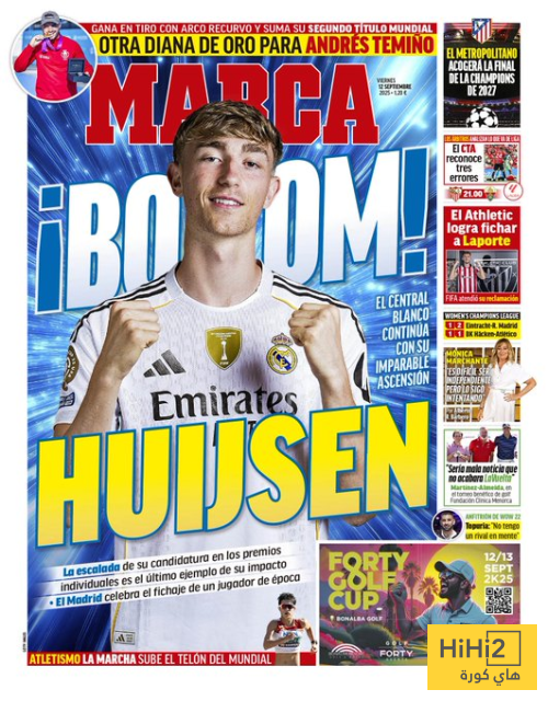 هويسين تصدر غلاف الماركا اليوم الجمعة الموافق 12 سبتمبر 2025، وعنونت الصحيفة :