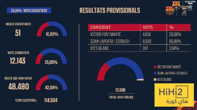 النتائج الرسمية بعد فرز ربع عدد الاصوات في انتخابات برشلونة