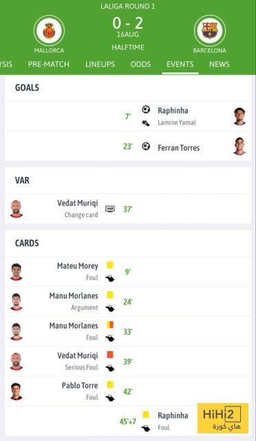 الاخطاء على مايوركا في الشوط الاول : 7