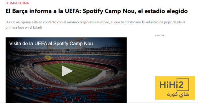 هاي كورة- أبلغ نادي برشلونة الاتحاد الاوروبي لكرة القدم (اليويفا) بنيته بخوض مباريات دور المجموعات من دوري ابطال اوروبا على ملعب سبوتيفاي كامب نو .