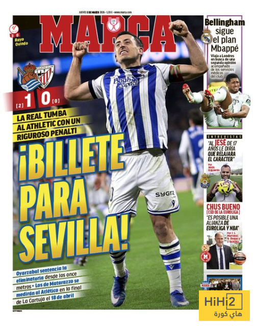 هاي كور- سلطت صحيفة ماركا الاسبانية الضوء على اصابة مبابي وجود بيلينغهام ثنائي ريال مدريد ، وخصصت الصحيفة جزءا من غلافها اليوم الخميس 5 مارس 2026 قائلة :