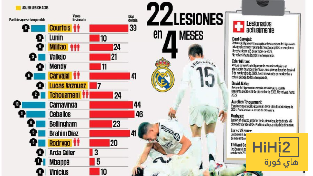 هاي كورة- كشف الصحفي أنخيل فيلانويفا أن ريال مدريد يعاني هذا الموسم من عدد إصابات أقل مقارنة بنفس الفترة من الموسم الماضي .