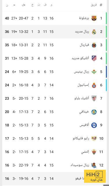 فيما يلي ترتيب الليغا قبل اللقاء :