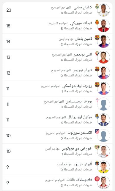 وجاءت قائمة ترتيب هدافي الليغا كالتالي :