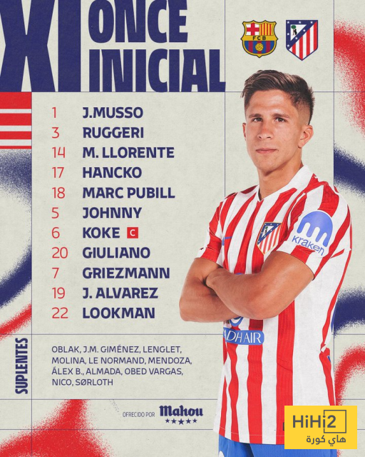 تشكيلة اتلتيكو مدريد الرسمية للقاء برشلونة