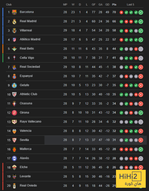جدول الليغا :