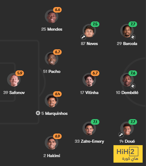تقييم لاعبو باريس سان جيرمان في الشوط الاول :