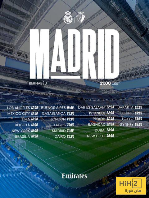 توقيت مباراة ريال مدريد و اوساسونا في أنحاء العالم