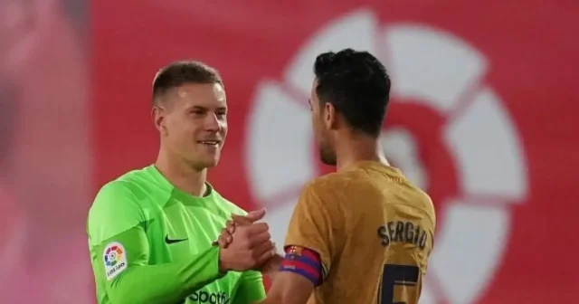 ووجه تير شتيجن، قائد برشلونة، رسالة تهنئة إلى بوسكيتس بمناسبة اعتزاله اللعب.