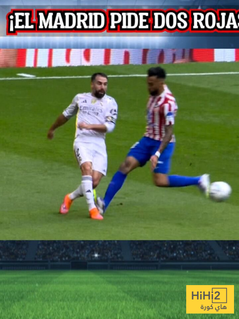 الجمهور رصد صورتين الاولي تدخل على لامين يامال كان فيها القرار هو الطرد المباشر ونفس هذا الحكم في لقاء ريال مدريد واتليتكو لم يمنح لاعب الاتليتي اي بطاقه عندما دهس على قدم كارفخال .