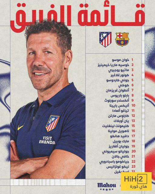 قائمة أتلتيكو مدريد الرسمية لمواجهة برشلونة