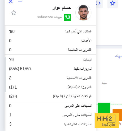 هاي كورة : ظهر حسام عوار بأداء جيد مع الاتحاد أمام النجمة، في اللقاء الذي انتهى بفوز الاتحاد بهدف دون رد، ضمن الجولة الثالثة من دوري روشن السعودي للمحترفين، وجاءت أرقامه حسب “سوفا سكور” كالتالي: