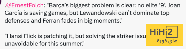 تكمن أكبر مشكلة لبرشلونة في غياب مهاجم من الطراز الرفيع ، صحيح أن خوان غارسيا ينقذ المباريات لكن ليفاندوفسكي لا يستطيع اختراق أقوى الدفاعات ، وفيران يتراجع مستواه في اللحظات الحاسمة ، هانز فليك يحاول ترقيع الوضع لكن حل مشكلة المهاجم أمر لا مفر منه هذا الصيف .