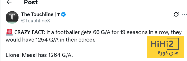 “لو نجح أي لاعب كرة قدم في تحقيق 66 مساهمة تهديفية (أهداف + تمريرات حاسمة) كل موسم ولمدة 19 عامًا متتالية، فسيصل مجموع مساهماته إلى 1254 فقط خلال مسيرته، لكن ميسي فعل ما هو أعظم؛ إذ يمتلك النجم الأرجنتيني 1264 مساهمة تهديفية في مسيرته الاحترافية، متفوقًا على هذا الرقم الخيالي بالفعل!”.