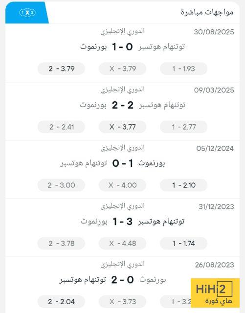 نتائج آخر خمس مباريات بين توتنهام وبورنموث