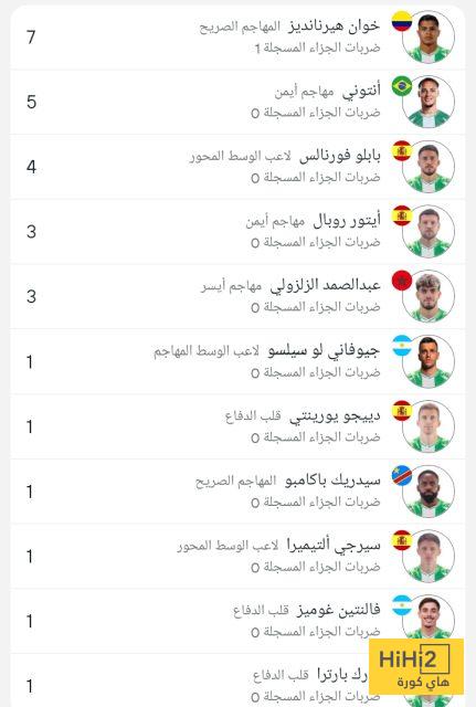 وجاءت قائمة هدافي ريال بيتيس كالتالي :