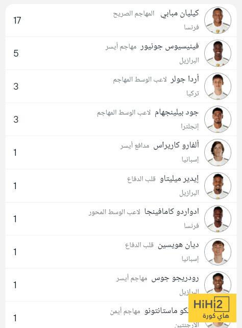 وجاءت قائمة هدافي ريال مدريد في الليغا كالتالي :